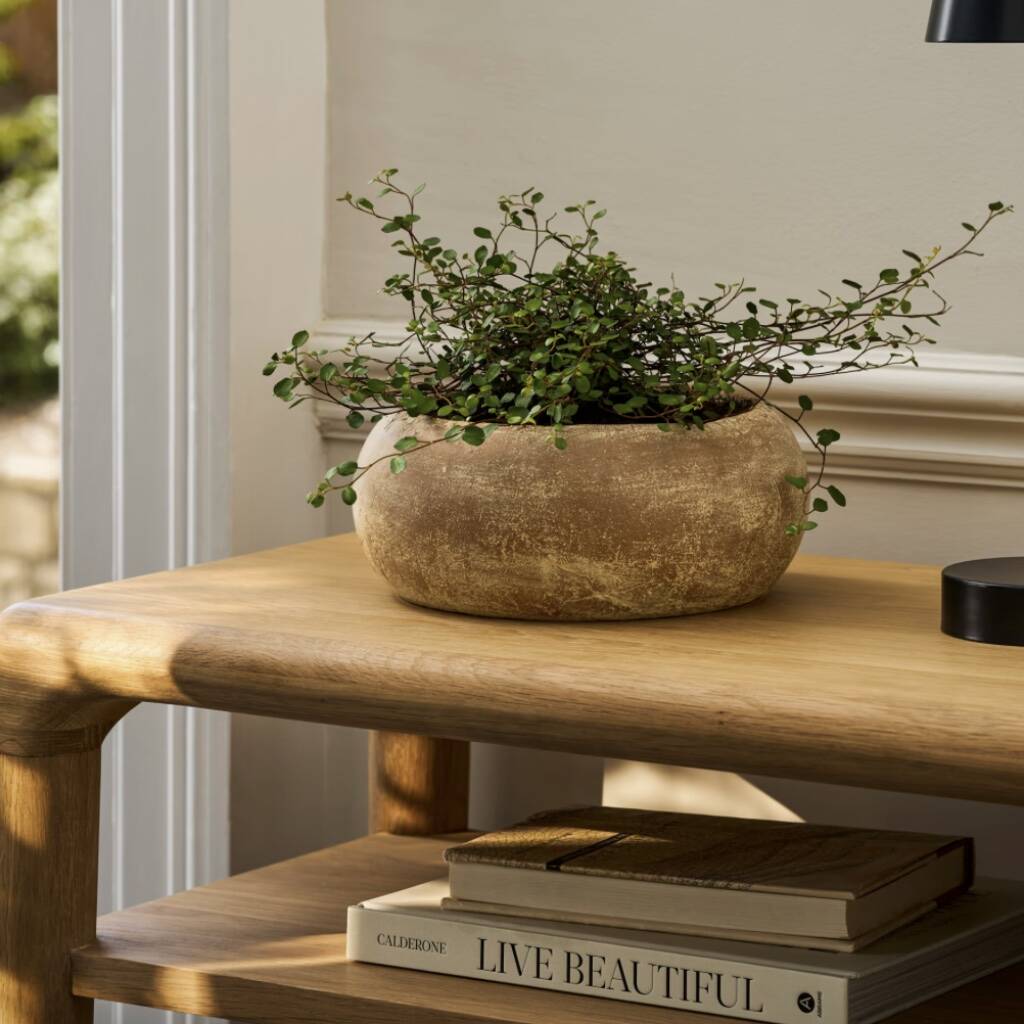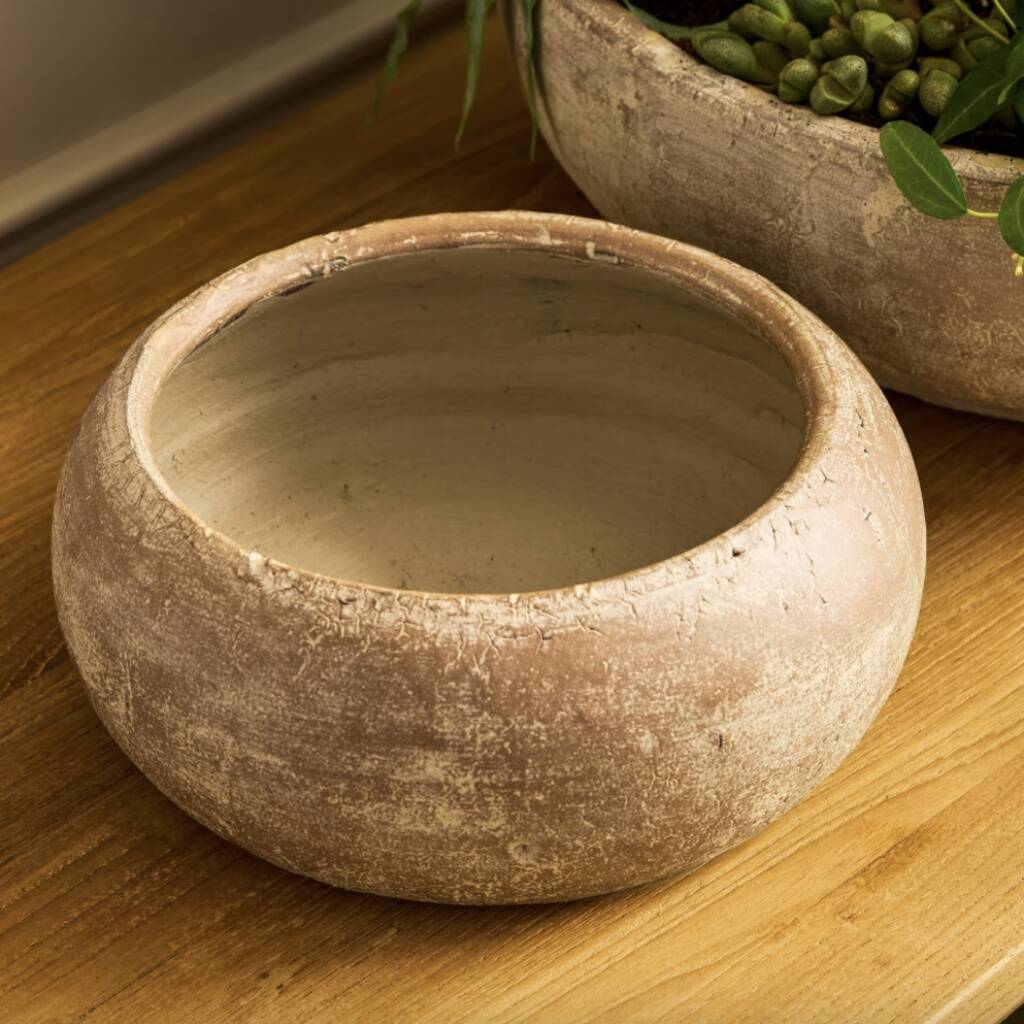 Add rustic charm to your garden with this antique-style terracotta plant bowl. Features weathered finish that gives instant character to plant displays. Perfect for succulents, herbs, or seasonal plantings. Drainage holes included.