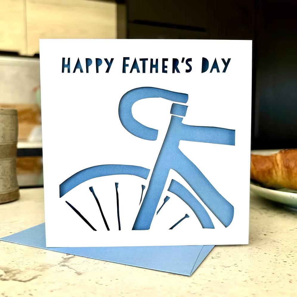 The crisp white top layer is precision laser-cut to reveal a vibrant background, creating a bold, architectural feel that stands out on any mantelpiece. It’s more than just a card—it’s a “wheelie” great way to show your appreciation for the man who’s always pedaling forward for his family, whether he’s tackling a steep climb or enjoying a flat sprint.