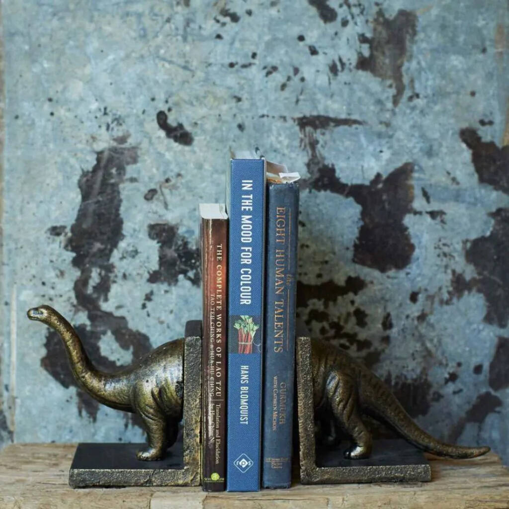 Add a touch of Jurassic character to your bookshelf with these cast iron Brontosaurus bookends. Crafted with a heavy-duty, solid feel, each piece speaks to its quality and is built from 100% cast iron, making them strong enough to support your most substantial hardbacks.