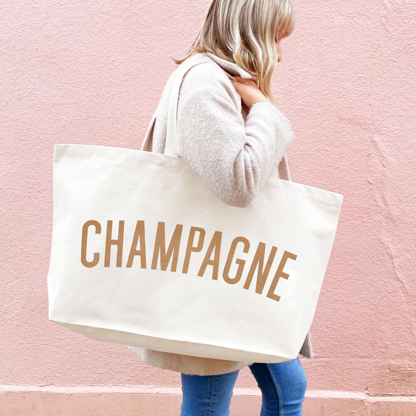 Finally, a bag big enough for all of your bubbles! Our really big bags are incredibly useful and perfectly sized for picnics, weekends away, and big celebrations. This oversized canvas tote is your go-to for carrying everything you need, no matter the occasion.
