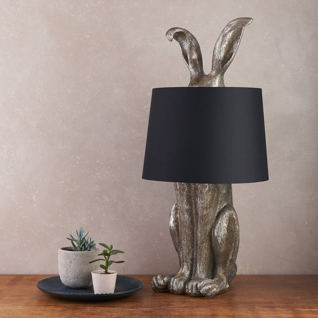 Searching for a statement piece that blends whimsy with sophisticated design? Our Hare Table Lamp is the perfect addition to any home. Boasting intricate detail on the hare’s body and signature large, floppy ears, this metallic table light brings a touch of personality to your space.