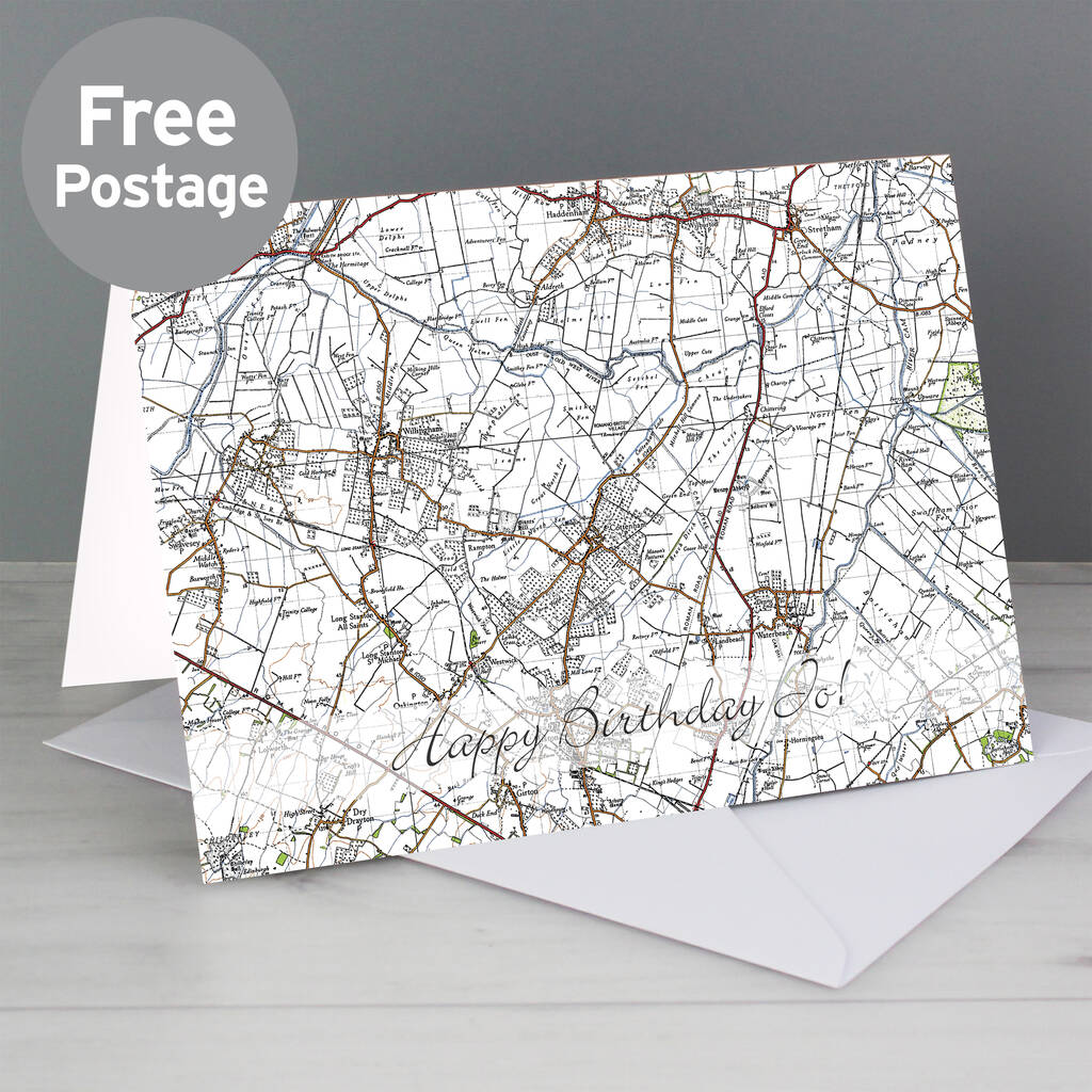 Personalise our Personalised Map Card with any UK postcode* and a message or name on the front up to 20 characters.
