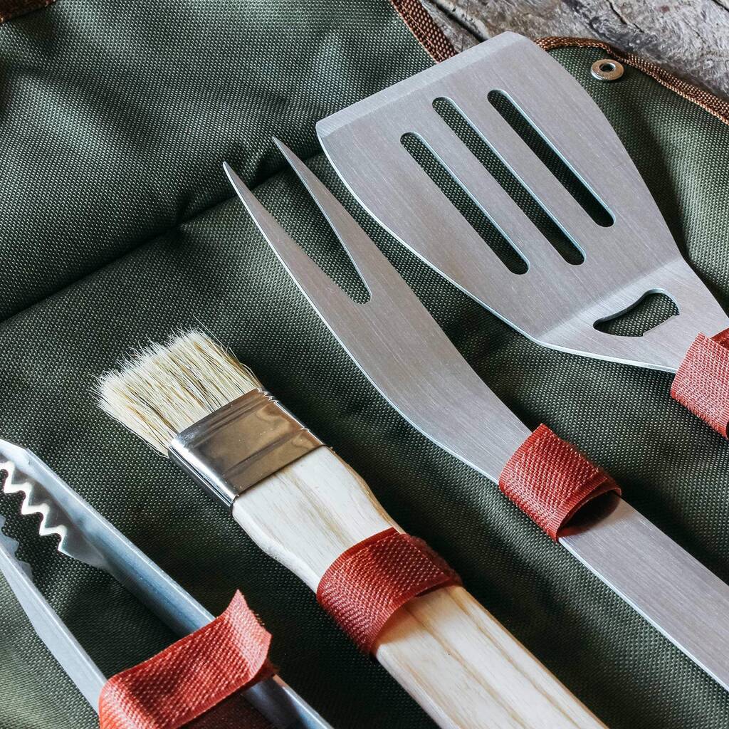 Everything comes neatly organised in a custom-made canvas carrying bag, keeping your tools protected and easy to transport to wherever the grill is fired up. The bag features a classic green colour, ensuring it looks smart in any outdoor setting.