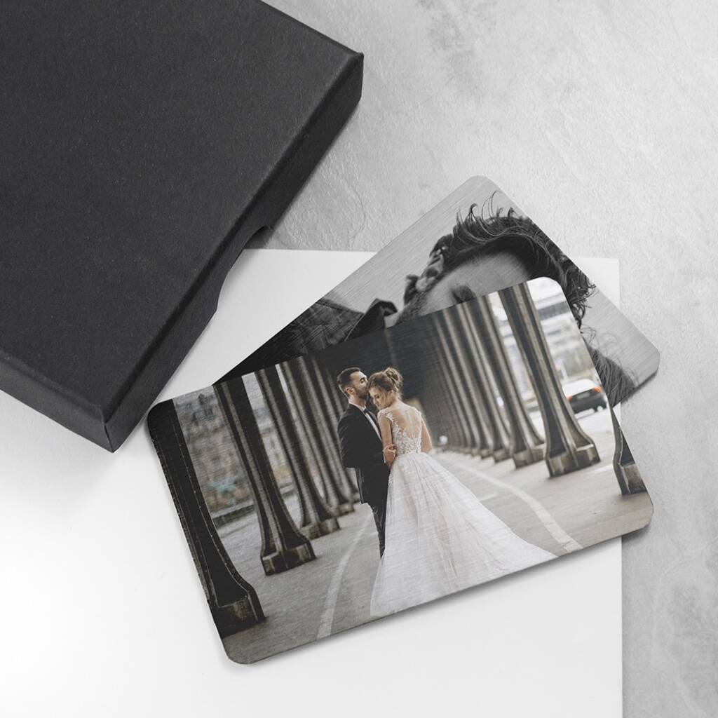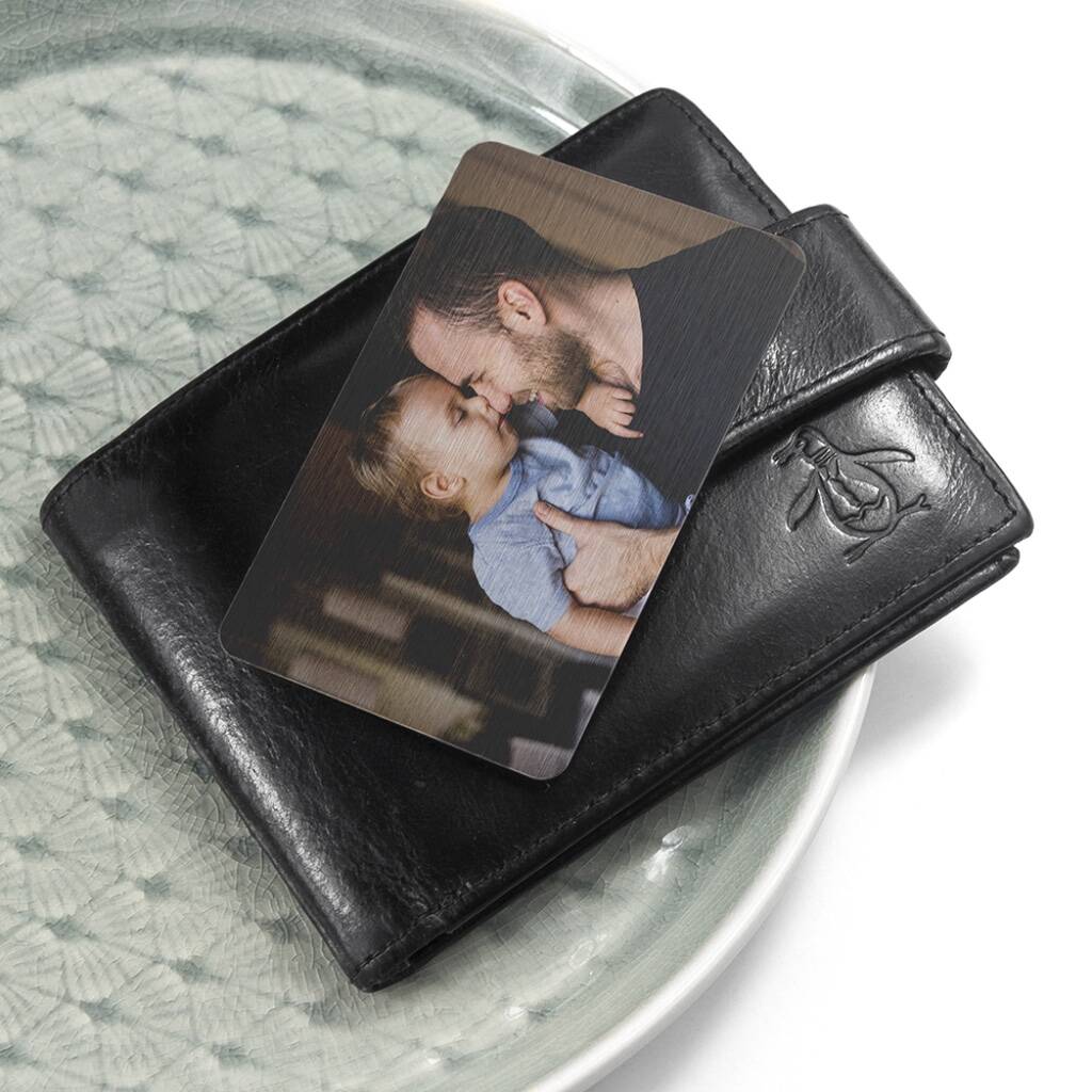 Make your favourite memories truly portable with our Personalised Photo Wallet Insert — a sleek keepsake designed to be carried every day. Made to the same size as a standard credit card, this metal insert fits easily into any wallet or purse, letting your most meaningful moments stay close wherever you go. Each insert is beautifully presented in a black plush gift box, making it ready to gift. It’s also slim enough to fit through a letterbox, so your loved one won’t need to be home for delivery.