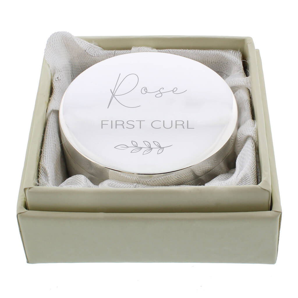 Our Personalised First Curl Trinket Box is an ideal place to store a baby’s first curl.