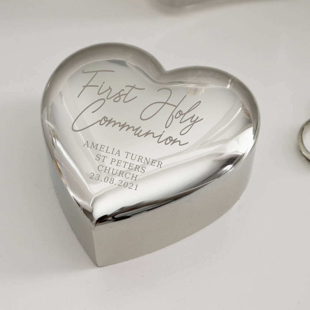 Our Personalised First Holy Communion Heart Trinket Box is a gorgeous commemorative gift for any little one’s First Holy Communion.