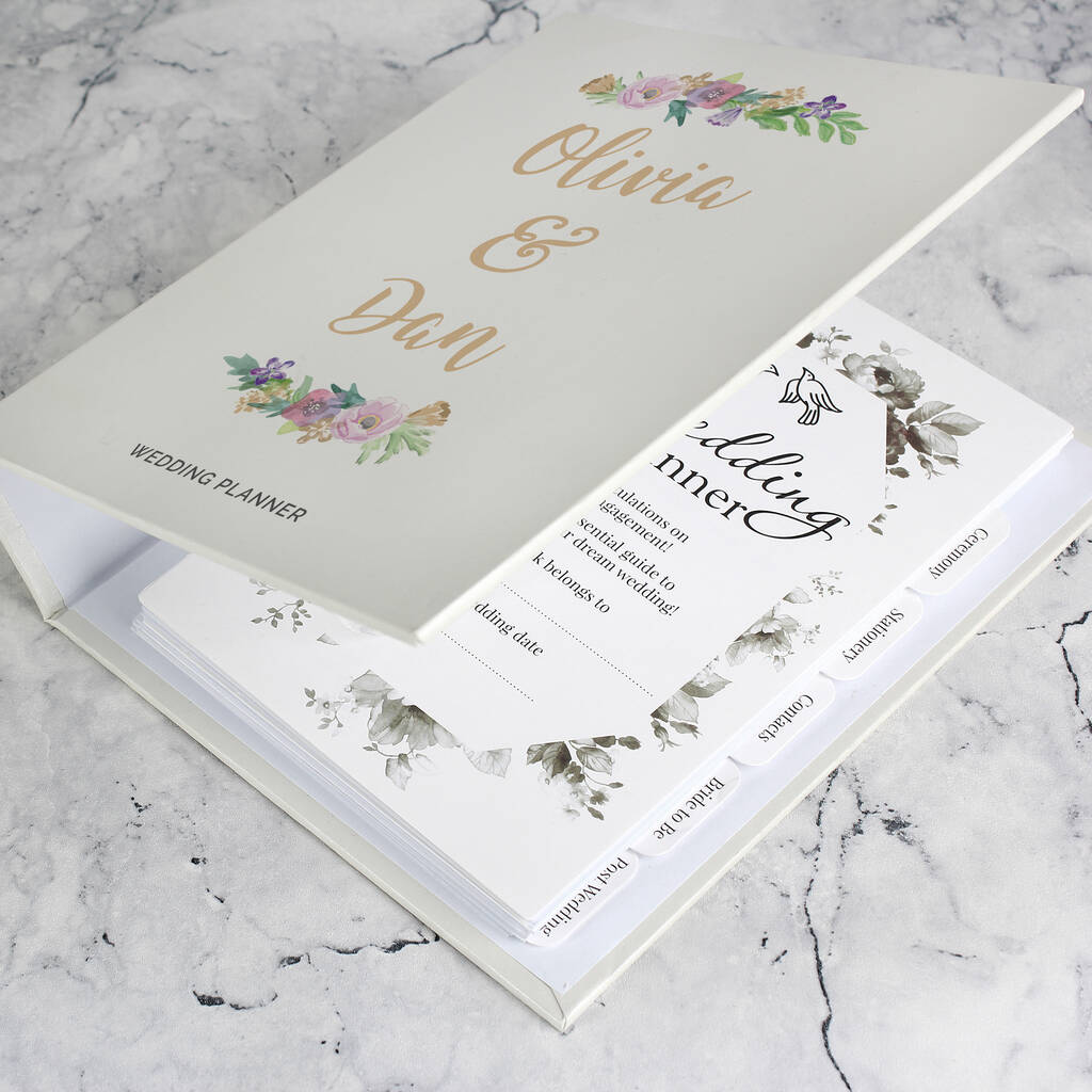 Plan your big day in style with this personalised floral watercolour wedding planner.