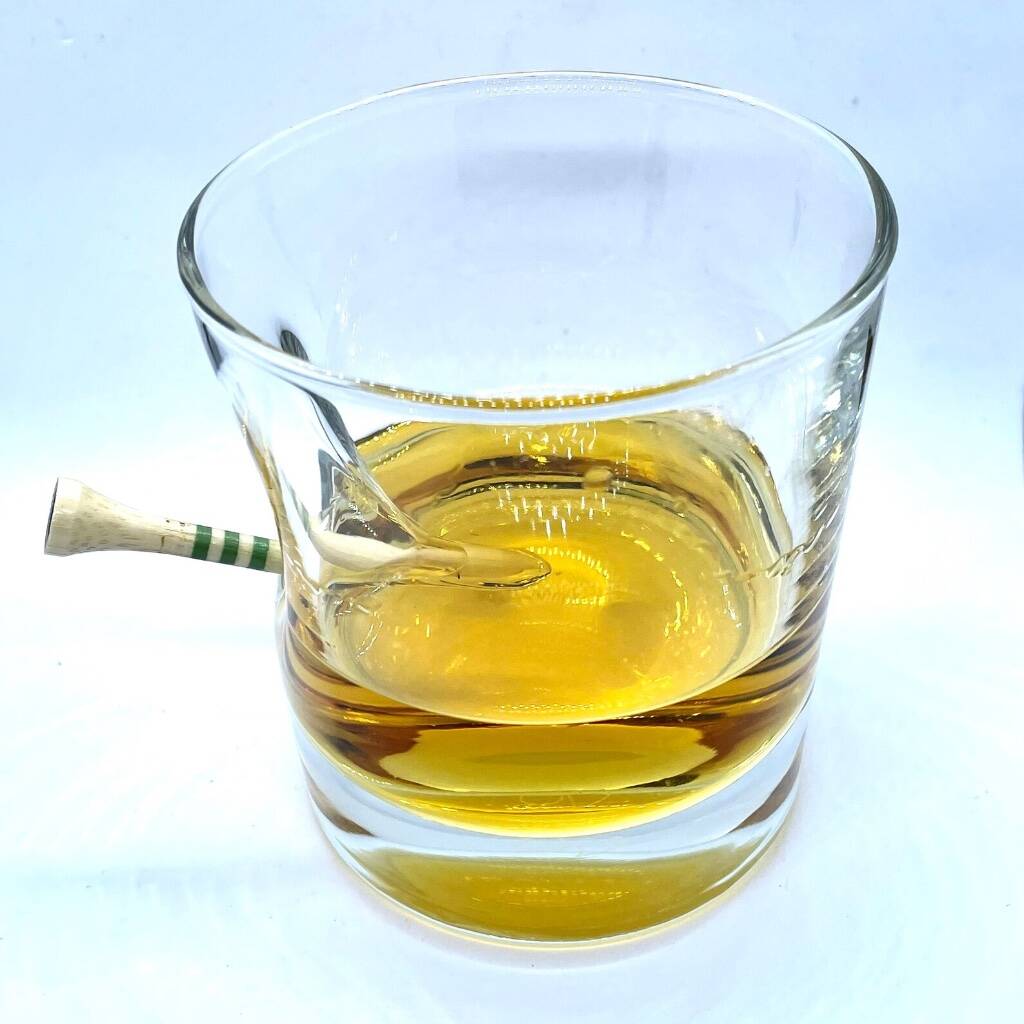 The 11oz whisky glass has a real golf tee embedded into the side of the glass.