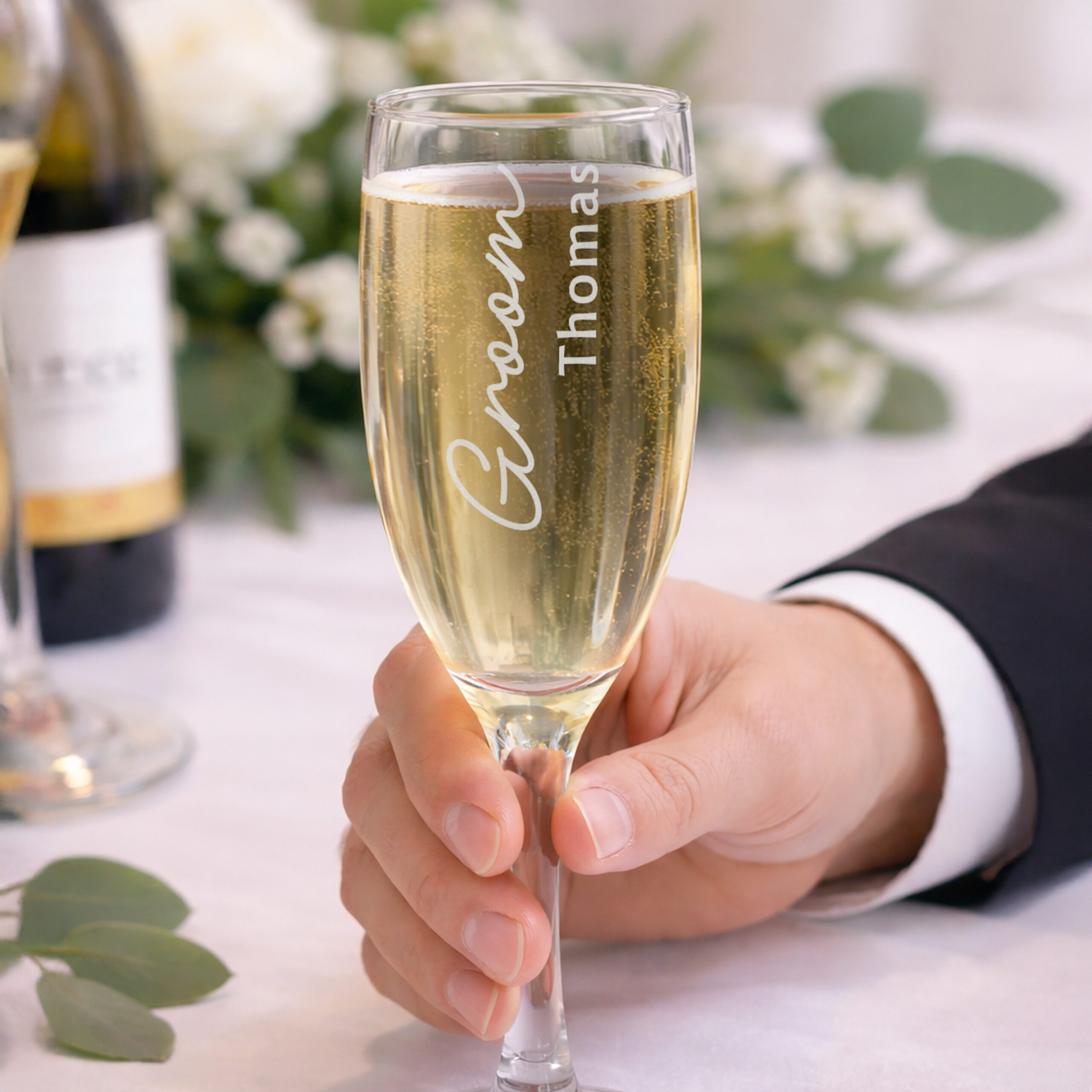 View our Glassware Range to find flutes for the Bride, Best Man, and more.