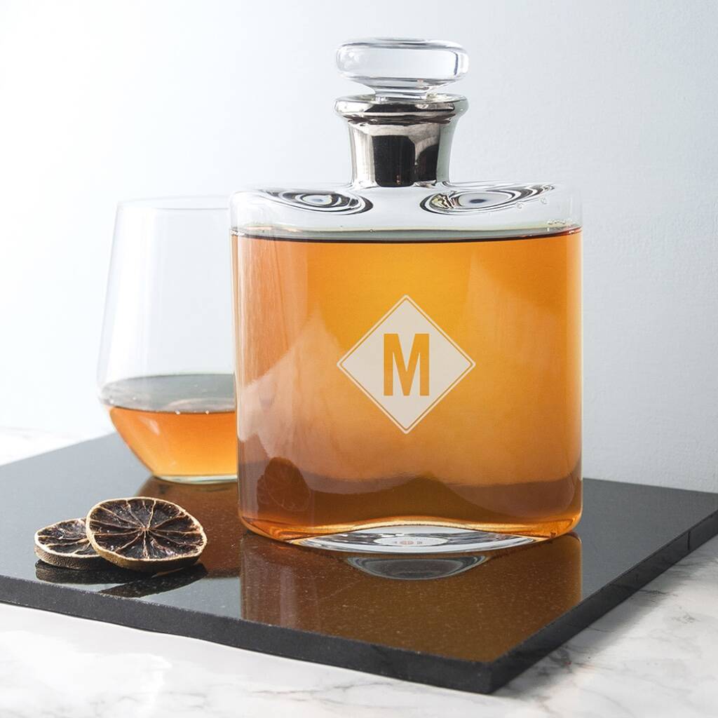 Our Personalised Monogrammed Platinum Necked Decanter has been mouth-blown and gently rounded at the edges to create it’s proud square shape.