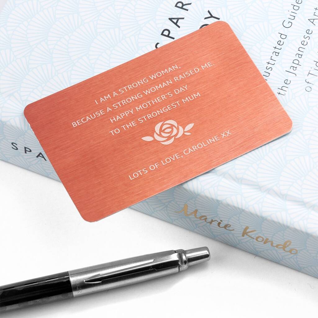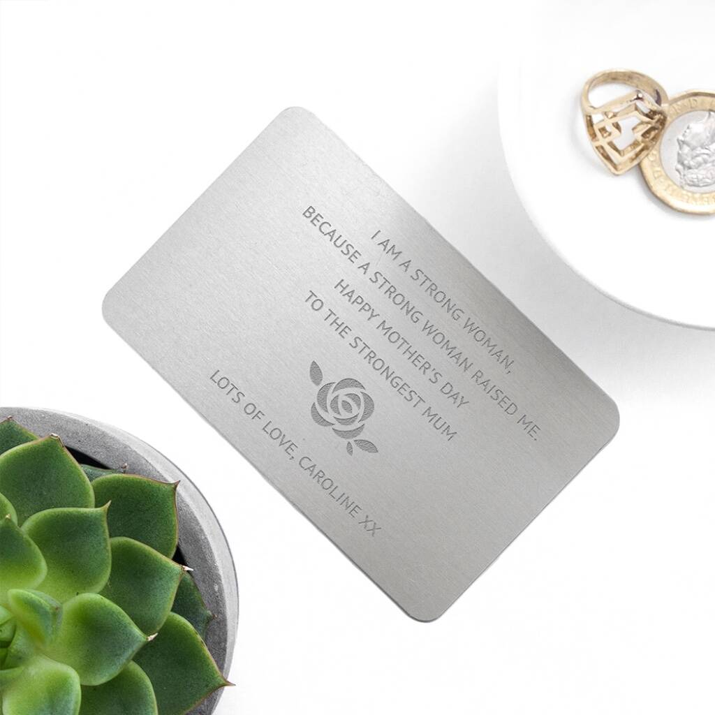 With the flower engraved in the middle of the card, this metal insert is a way to keep a message with you at all times.