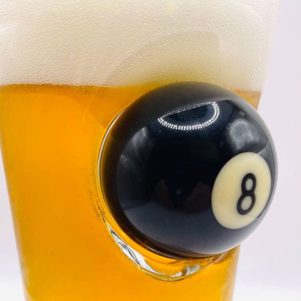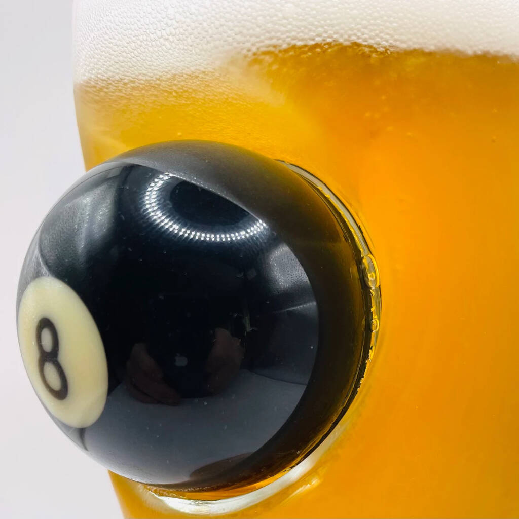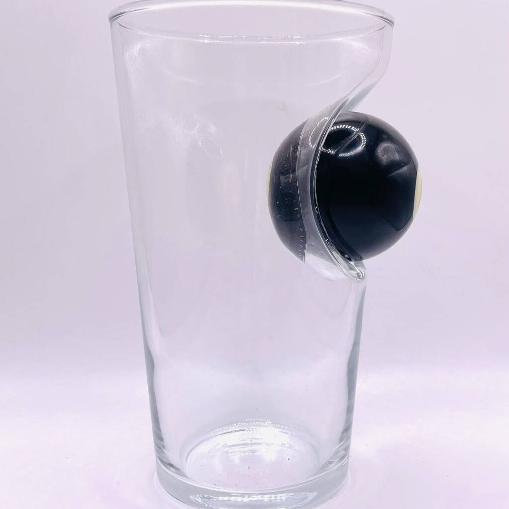 Our Personalised Pool Ball Beer Glasses are embedded with a number 8 snooker ball.
