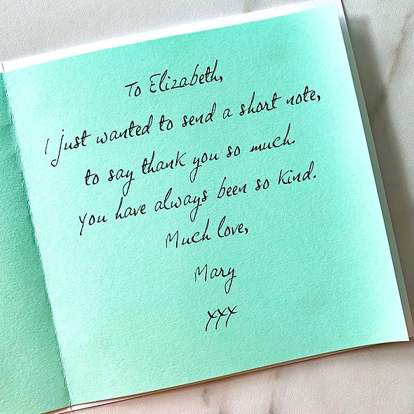 Cards chosen with this option will include the message exactly as specified in the text box provided, and sent in an envelope directly to the contact name and delivery address provided.