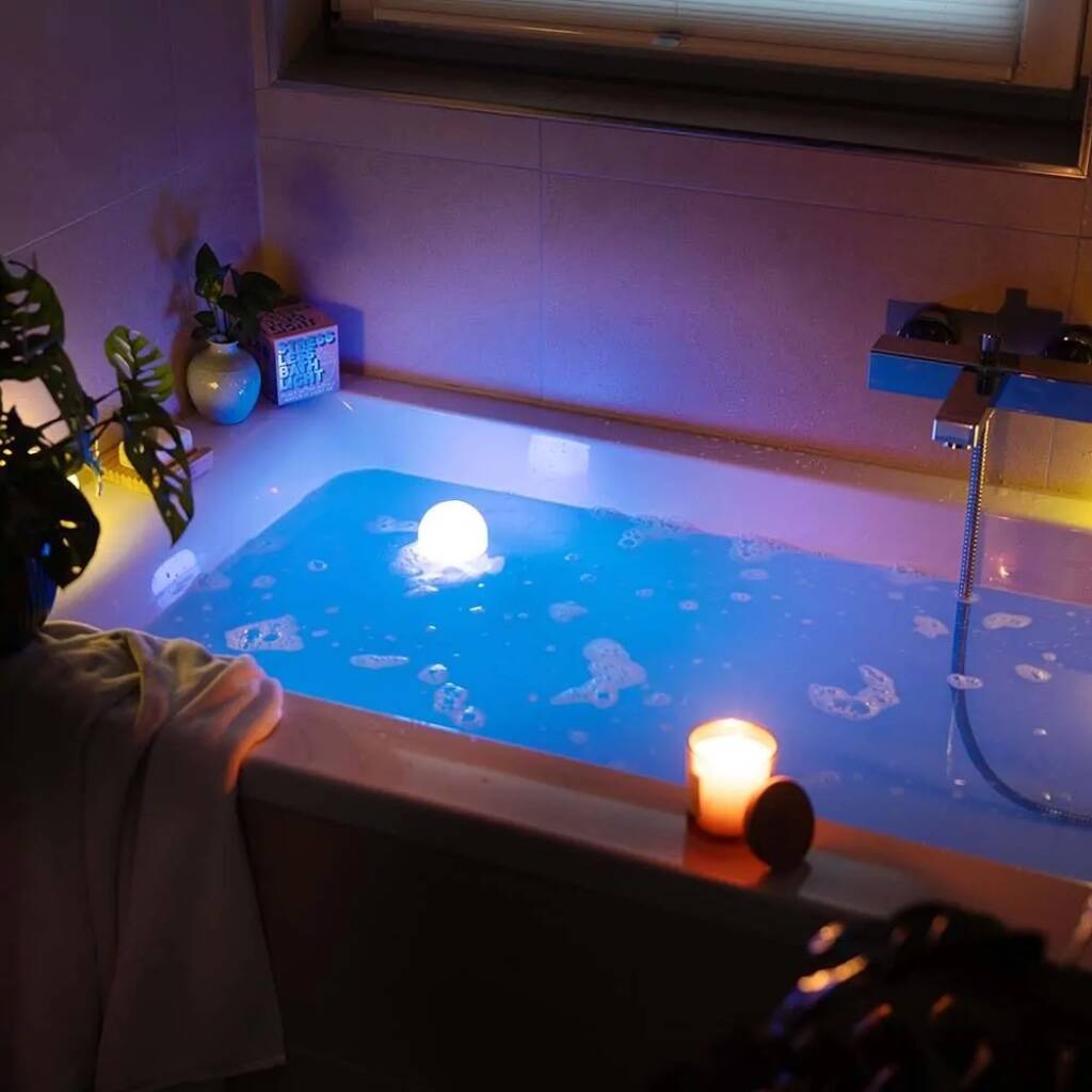 The Stress Less Bath Light floats gently on the water, cycling through seven soothing colours designed to create a calmer, more relaxing atmosphere. It’s a simple addition that shifts bath time from routine to ritual.